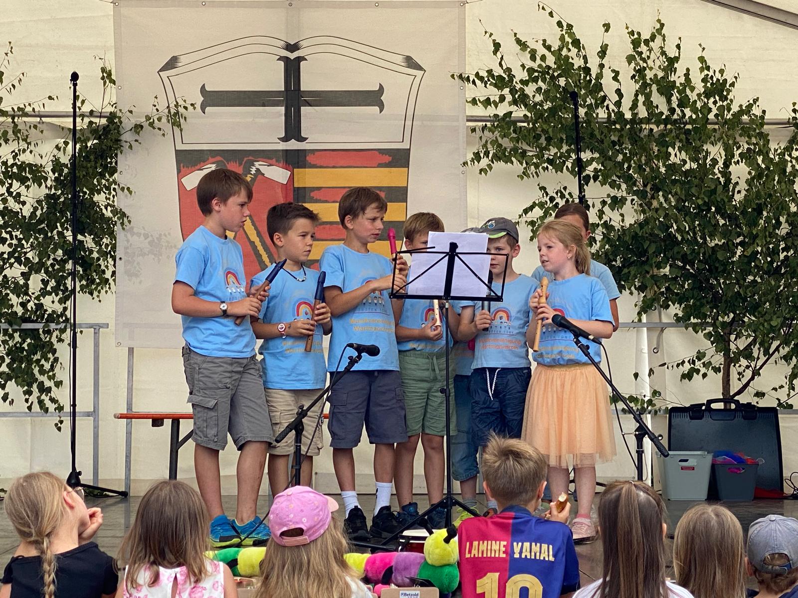 Mit der Blockflötengruppe „Trötentöne“ erklangen dann erste richtige Melodien. Die jungen Musikerinnen und Musiker zeigten stolz, was sie gelernt haben – konzentriert, mutig und voller Freude.